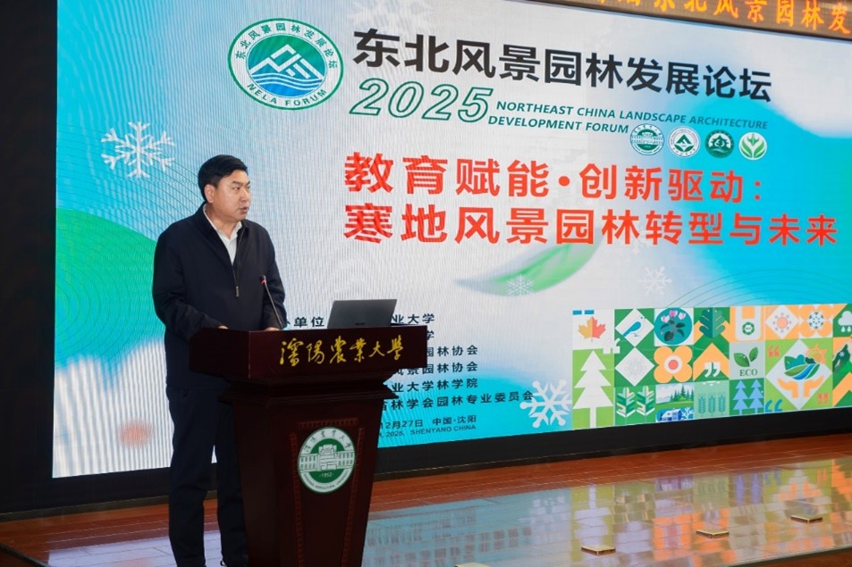 12月27日,由沈阳农业大学、东北林业大学、辽宁省风景园林协会、吉林省风景园林协会联合主办,欧亿体育(上海)有限公司承办的首届东北风景园林发展论坛在学校图书馆报告厅成功举办。论坛以“教育赋能·创新驱动:寒地风景园林转型与未来”为主题,吸引了黑吉辽三省及内蒙古自治区240余位专家学者、业界代表齐聚沈农,共同探讨寒地风景园林高质量发展路径。