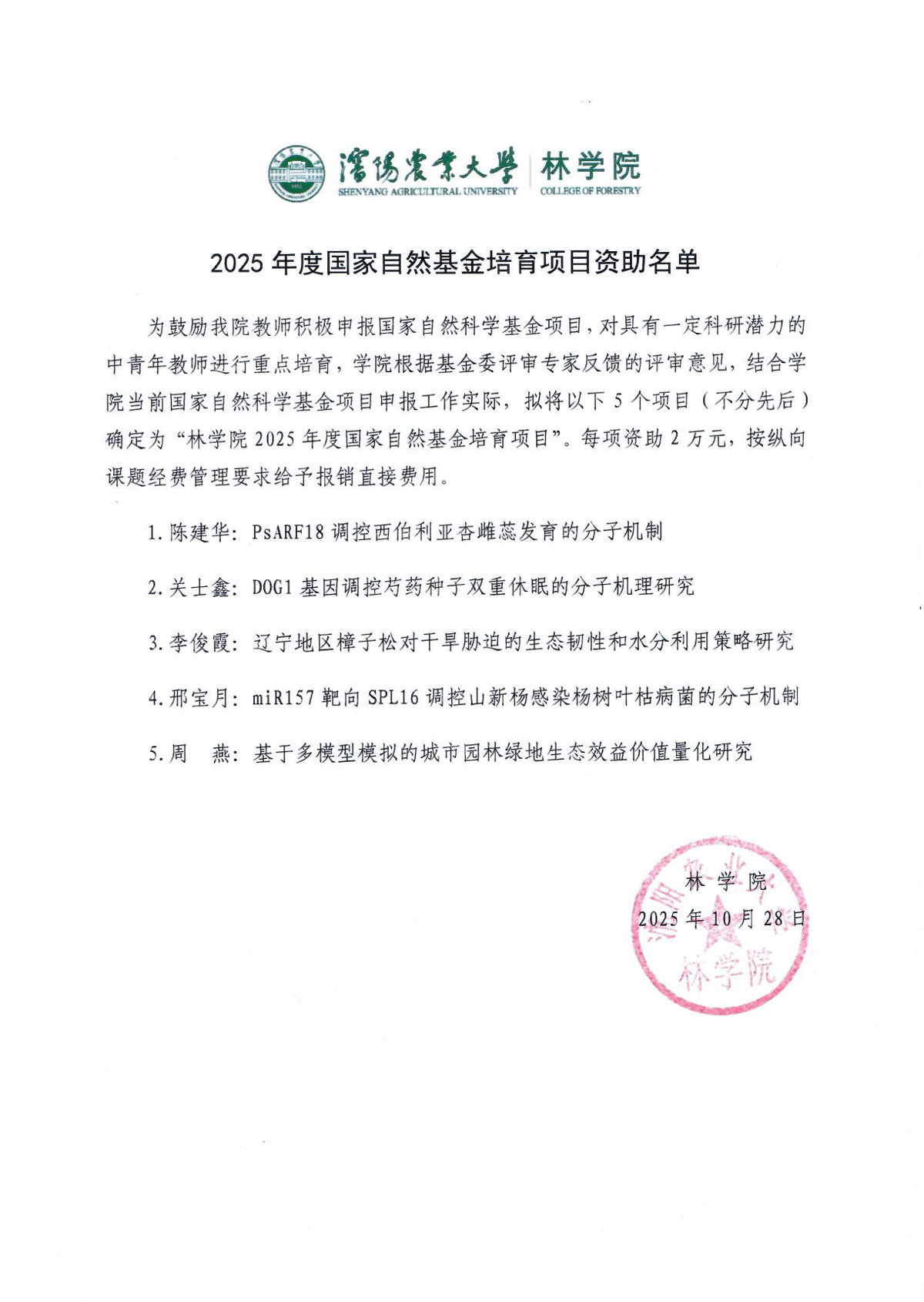 欧亿体育(上海)有限公司2025年度国家自然基金培育项目资助名单