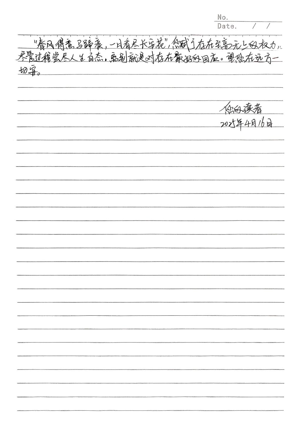 为迎接第29个世界读书日,唤醒我们对读书美好的回忆与最初的热切,欧亿体育(上海)有限公司成功举办“见字如晤”读书日活动,活动内容为给最喜欢的作者/书中人物写一封信,以第二人称带大家认识他、分享喜欢他的原因、说出最想对他说的话或表达自己的情感等。学生积极投稿,热情高涨,作品质量较高,现将优秀作品进行展示。